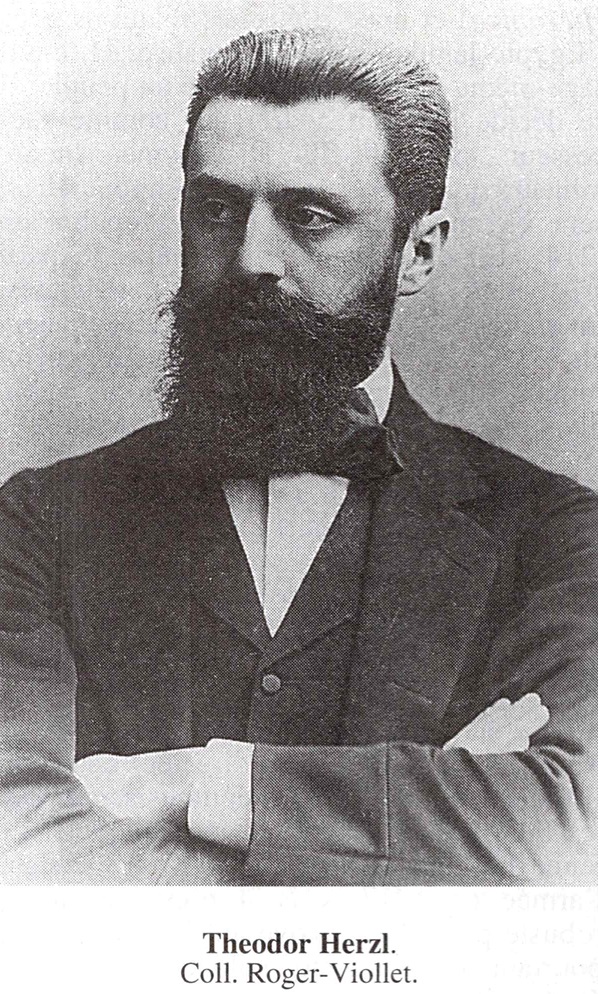 HERZL Theodor. Ecrivain juif hongrois, fondateur du sionisme. Né à Budapest le 2 mai 1860, mort à Edlach, près de Vienne, le 3 juillet 1904. Avec sa famille il alla habiter Vienne, en 1878, où il fit son droit; diplômé en 1884, il commença son apprentissage judiciaire, d'abord dans la capitale, puis à Salzbourg. Mais il l'abandonna rapidement pour se consacrer au théâtre et au journalisme, avec succès. En 1891, la Neue Freie Presse, le grand journal libéral viennois, l'envoya comme correspondant à Paris, où il suivit la