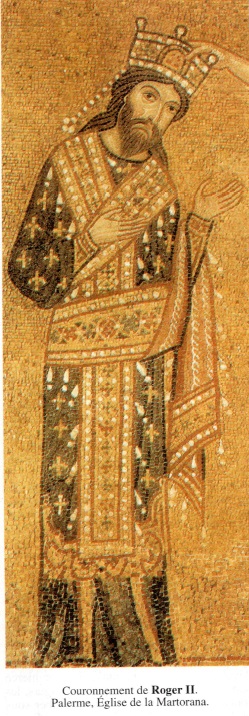 de l’empereur Lothaire ne réussissent pas à briser la puissance de R., bien que les Normands perdent provisoirement presque toute l’Italie du Sud. Lorsque, de son propre chef, le pape Innocent II déclenche une nouvelle guerre contre R., il court au désastre. Le 21 juillet 1139, sur le Garigliano, près de Galluccio, l’armée pontificale est écrasée, Innocent II capturé avec son trésor et ses archives. À la paix de Mignano (27 juill.), il doit relever le souverain normand de l’excommunication prononcée en 1135 et lui inféoder toutes ses possessions. La même année, Naples est normande. Parce que le mariage de son fils Guillaume (futur Guillaume Ier) avec une princesse byzantine ne se réalise pas, R. entre encore une fois en conflit avec Byzance qui, depuis 1107, possède à nouveau une position considérable en Adriatique. En 1147, il s’empare de Corfou, qu’il ne réussit toutefois à conserver que jusqu’en 1149, dévaste les côtes du Péloponnèse et donne l’assaut à Corinthe (évacuation des tisseurs de soie de Thèbes). L’empereur de Byzance, Manuel Ier Comnène, réussit cependant, en s’alliant au roi Conrad, auquel il est apparenté, et aux Vénitiens, à repousser les attaques des Normands, à reconquérir les territoires perdus et également à reprendre pied en Italie du Sud. De 1148 à 1160, les Normands lancent des expéditions à la conquête de l’Afrique (Bône, Tunis, Mehadia, Tripoli). R. réunit par la force les seigneuries normandes d’Italie du Sud et institue ainsi un type de pouvoir qui, dans sa spécificité, servira plus tard de modèle à l’empereur Frédéric IL Les principes de l’administration centralisée sont résumés dans les Assises d’Ariano (1140). Fils d’un guerrier dont on sait seulement qu’il aimait la musique, R. est ouvert à la culture, aux arts comme aux sciences ; la splendeur du roi et son habileté idéologique se lisent dans l’admirable chapelle palatine de Palerme, édifiée et décorée entre 1129 et 1140. Le souverain promeut aussi l’enseignement, qui doit former ses fonctionnaires. On enseigne le droit à Naples et Amalfi, la médecine à Salerne. R. favorise les activités de marchands (Génois, Vénitiens, Pisans). Des administrations orientales, il conserve le dirigisme économique et les monopoles (ainsi celui de la soie, tissée dans des ateliers royaux). Dès son règne pourtant, les symptômes persistent des bases du sous-développement méridional ; le commerce reste largement aux mains des étrangers, les fonctionnaires ne tardent pas à tomber sous la dépendance de la noblesse normande, qui n’a fait que se substituer aux anciens grands propriétaires. À la mort de R. (26 févr. 1154), son fils Guillaume Ier lui succède. En le faisant associer au trône dès 1151, R. a montré qu’il pressentait les révoltes baronniales qui explosent aussitôt son décès connu.